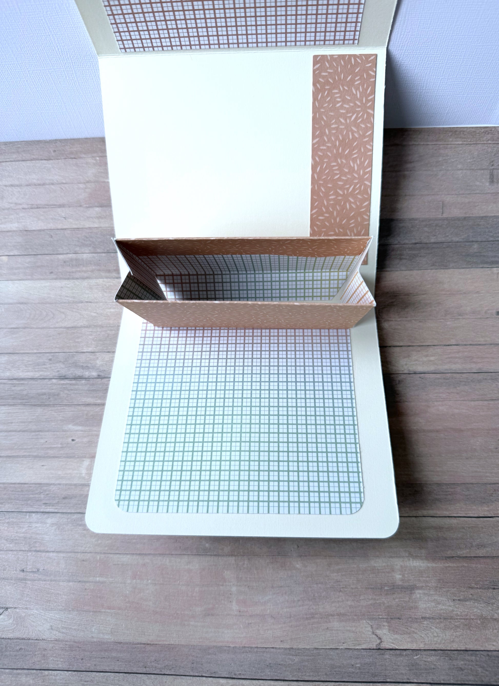 Diese Karte ist ein absoluter Hingucker. Wenn man sie öffnet klappt sich in der Mitte eine kleine Tasche auf. Darin lassen sich wunderbar Geld oder Gutscheine verschenken. An den Seiten ist genug Platz für persönliche Glückwünsche.