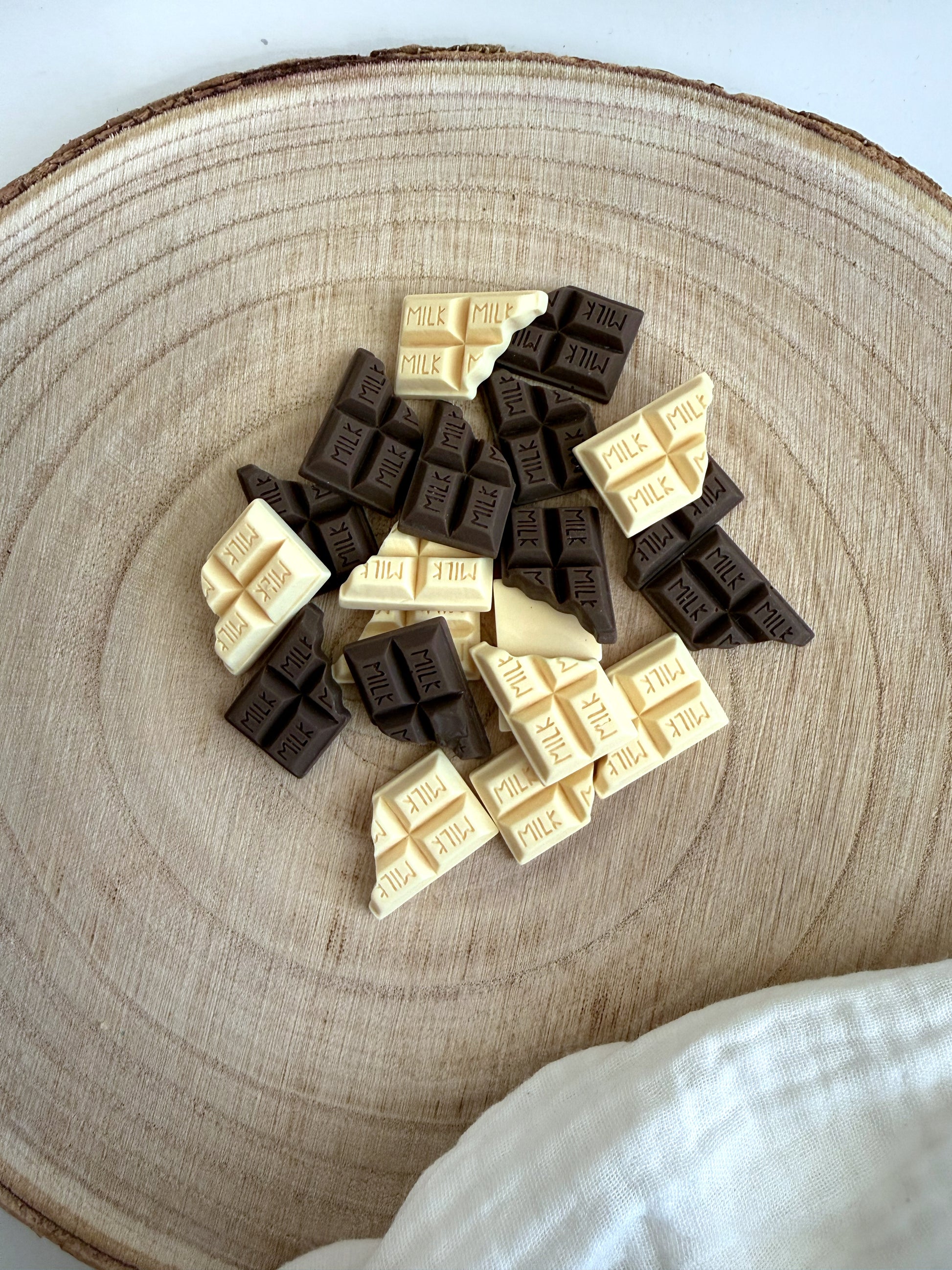 Wer Schokolade mag, kommt bei diesen Miniaturen auf seine Kosten. Mit dem 2er Set lassen sich wunderbar verschiedenste Bastelprojekte verzieren.